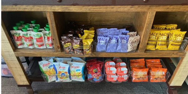 We have a variety of peanut free, gluten free and vegetarian snacks and drinks for purchase at reasonable prices.